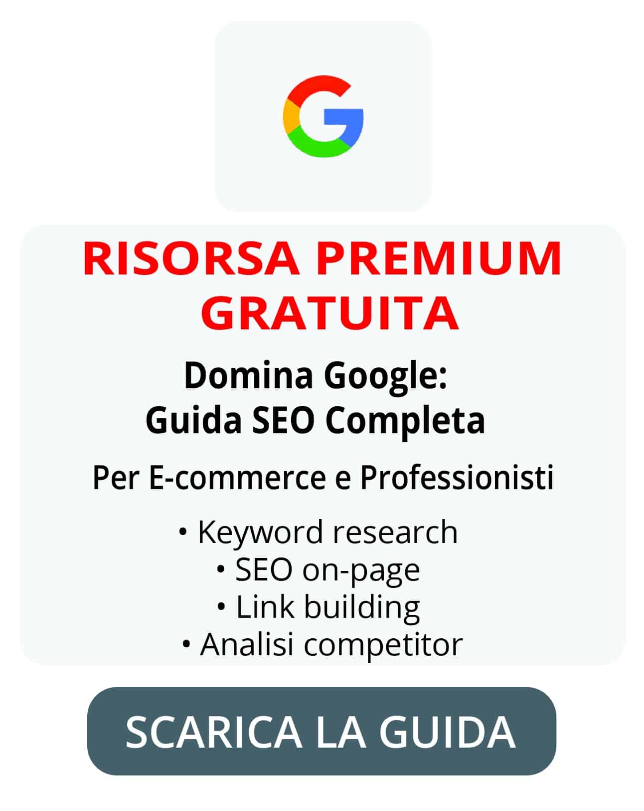 Leggi anche il nostro approfondimento: “Come ottimizzare un e-commerce in chiave SEO: 8 Consigli di Google”